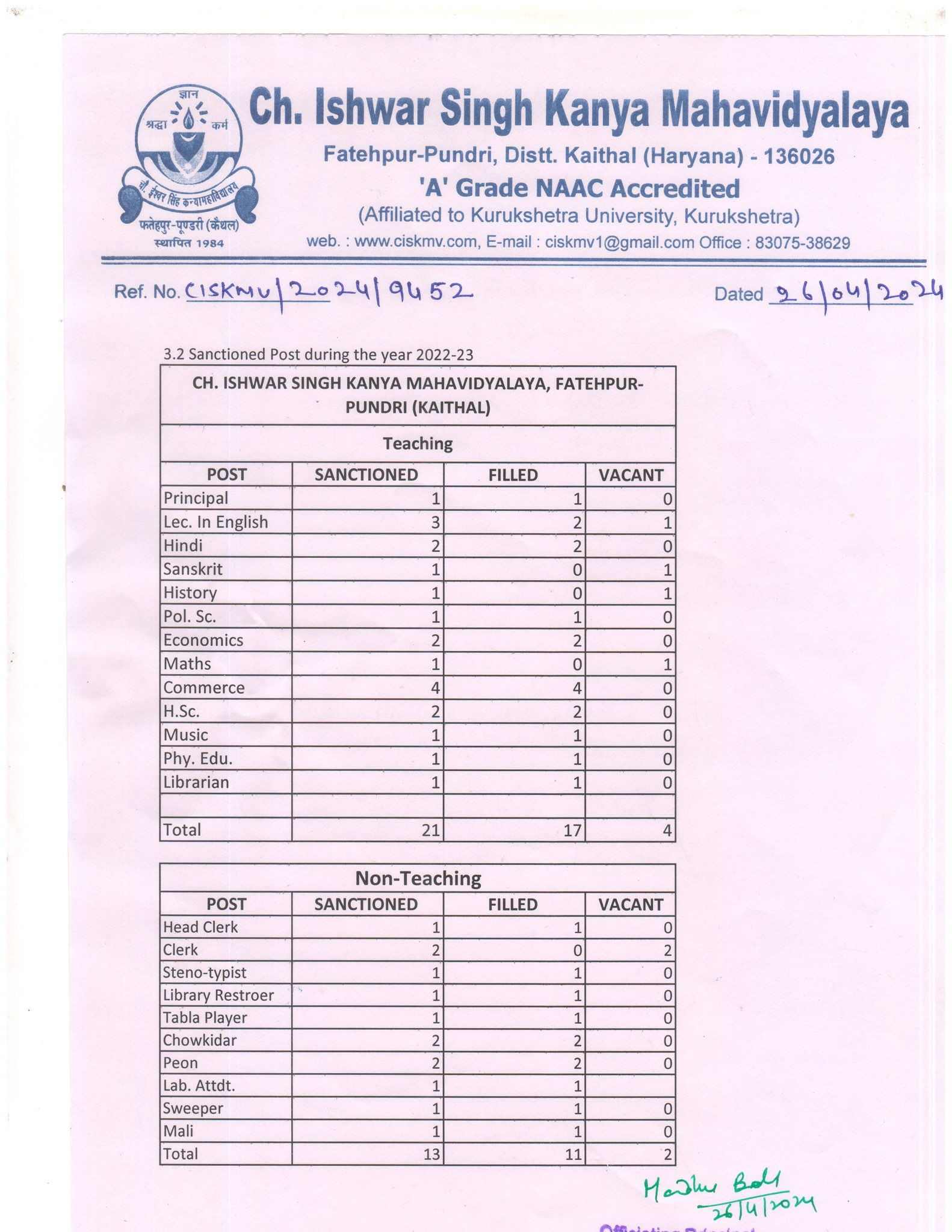 Welcome to Ch. Ishwar Singh Kanya Mahavidyalaya, Fatehpur-Pundri (Haryana)                                                                                                                   NAAC ACCREDITED GRADE ‘A’